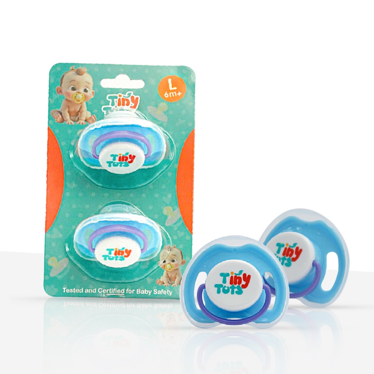 Tiny Tots Baby Pacifiers – Blue, Large (6+ Months / Pack of 2)